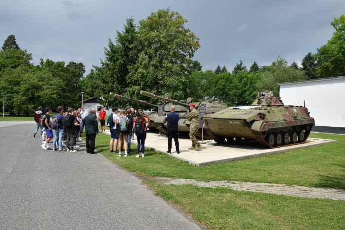 Minuli četrtek se je avtobus, poln devetošolcev iz OŠ Vitanje, Zreče, Pod goro in Ob Dravinji, njihovih mentorjev ter članov predsedstva OZVVS Slovenske Konjice odpravil proti Kadetnici v Mariboru. To je bila nagrada učencem, ki so bili prisotni na predavanjih o temah kot so Teritorialna obramba, predvojno skrivanje orožja, o sami vojni za Slovenijo in ostalih vojaških temah. Zbrane na avtobusu je pozdravil predsednik OZVVS Slovenske Konjice Benjamin Macuh in jim zaželel lep in zanimiv dan. Pred Kadetnico je prišleke pričakal Načelnik vojaškega muzeja podpolkovnik Marko Hlastec in jim predstavil vse okoli muzeja in kadetnice. O času pred in med osamosvojitveno vojno leta 1991 je spregovoril kustos muzeja Mladen Horvat, o orožju iz preteklosti in sedanjosti pa zelo zabaven restavrator in konzervator v muzeju Franc Pleteršek. Z zabavnimi temami je animiral zbrano množico. Tudi profesoric, ki so stale v ozadju se je lotil. Baje so se zbale njegovih vprašanj. Najbolj zainteresiran za vojaško življenje in orožje pa je bil osemletni Maj Rebernak. Prav tako pa tudi ostali slušatelji. Po malici so si učenci in njihovi spremljevalci ogledali še tanke, topove in ostalo težko oborožitev, ki pa jo več ne uporabljajo in so le še del zgodovine.